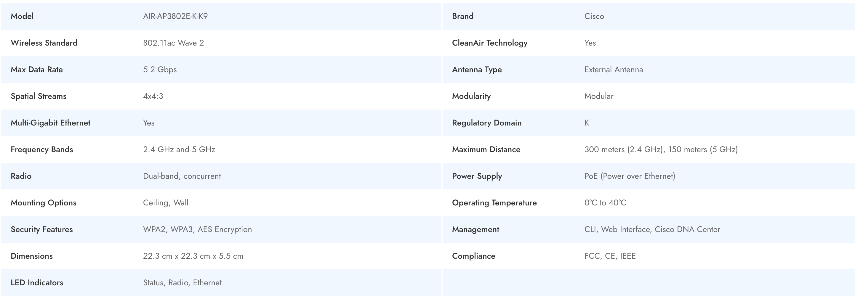 AIR-AP3802E-K-K9C - Cisco Aironet 3800e Access Point ConfigurableAIR-AP3802E-K-K9C - Cisco Aironet 3800e Access Point Configurable