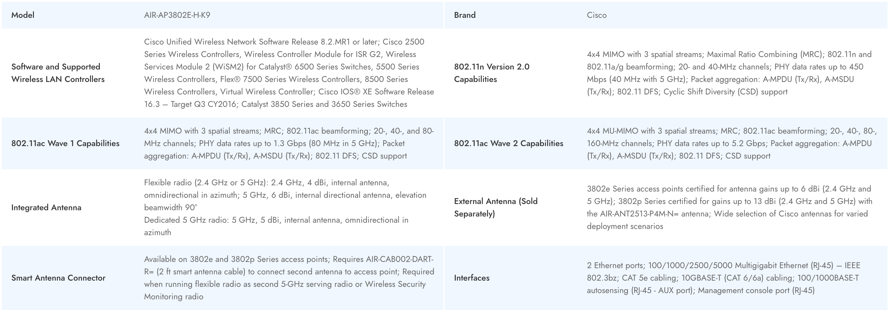 Cisco AIR-AP3802E-H-K9 is an enterprise-class access point designed to deliver high-performance wireless connectivity for modern business environments. With advanced 802.11ac Wave 2 technology, the 3802e access point ensures robust, scalable network coverage suited for demanding deployments. The air-ap3802e-h-k9 platform features multigigabit Ethernet support and flexible antenna configurations, making it ideal for high-density and mission-critical network applications, while maintaining optimal reliability and seamless integration within Cisco Unified Wireless solutions.