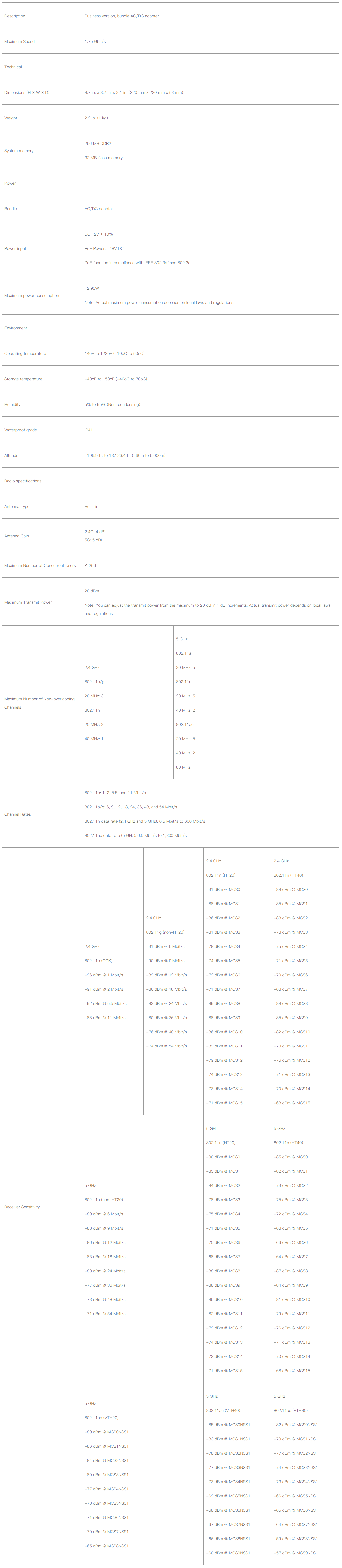 Huawei AP5030DN-S-DC performance-enhanced 802.11ac Access Point with DC power supply delivers high-capacity, secure WLAN access services for dense, wide-area user environments such as offices, airports, trains, and sports stadiums. Multiple authentication and encryption modes work with advanced user access controls to secure the network. Compare to AP5030DN-DC, AP5030DN-S-DC is a business version. Their specifications are the same.
