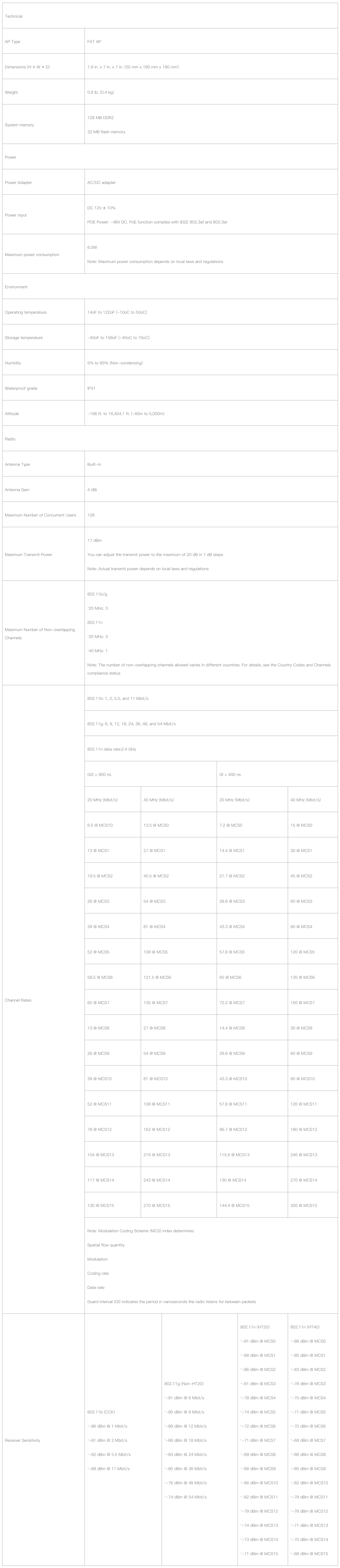 • Single-band AP5010SN-GN: works on the 2.4 GHz frequency band