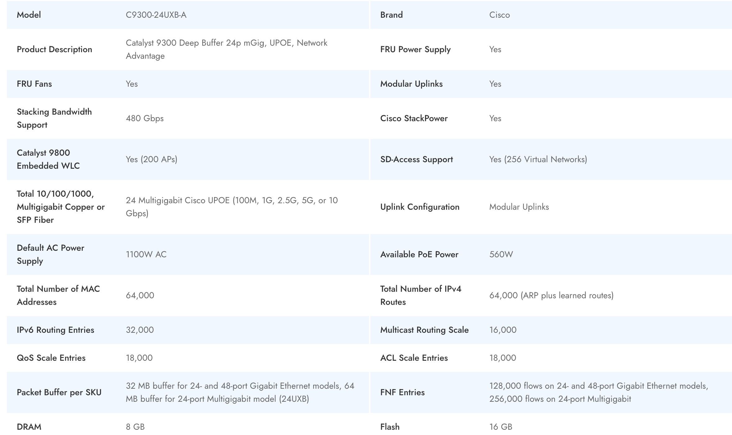 The Cisco C9300-24UXB-A is a high-performance enterprise-grade switch designed specifically for business-critical networks. As part of the innovative Cisco Catalyst family, it delivers reliable, stackable enterprise switching with advanced deep buffer technology. The switch features robust Power over Ethernet Plus (PoE+) capabilities and is purpose-built for environments that demand flexible, scalable connectivity and industry-leading modular uplinks. By enabling seamless integration of multigigabit connectivity and advanced network automation, the C9300-24UXB-A empowers organizations in Asia, Europe, Africa, and North America to meet growing bandwidth requirements, streamline network management, and reduce costs. Its modular uplinks and comprehensive PoE+ support guarantee maximum future-proofing for evolving IoT and collaboration applications. Leveraging Cisco’s design, the switch accommodates up to 24 multigigabit UPOE ports at speeds up to 10 Gbps and incorporates Cisco StackPower technology for resilient power and network availability. Scalable with 480 Gbps stacking bandwidth, the Cisco Catalyst C9300-24UXB-A is a trusted choice for distributors, system integrators, and end users seeking secure, high-density, and feature-rich solutions for campus, branch, or distributed office deployments. Integrated SD-Access support and a Catalyst 9800 Embedded WLC controller further optimize network segmentation and centralized wireless management, reinforcing the switch’s standing as the industry’s premier stackable enterprise switch. Whether deploying new digital services, modernizing infrastructure, or ensuring operational flexibility, the Cisco C9300-24UXB-A delivers high throughput, future-ready network performance, and exceptional PoE+ versatility that consistently adapts to diversified business needs.