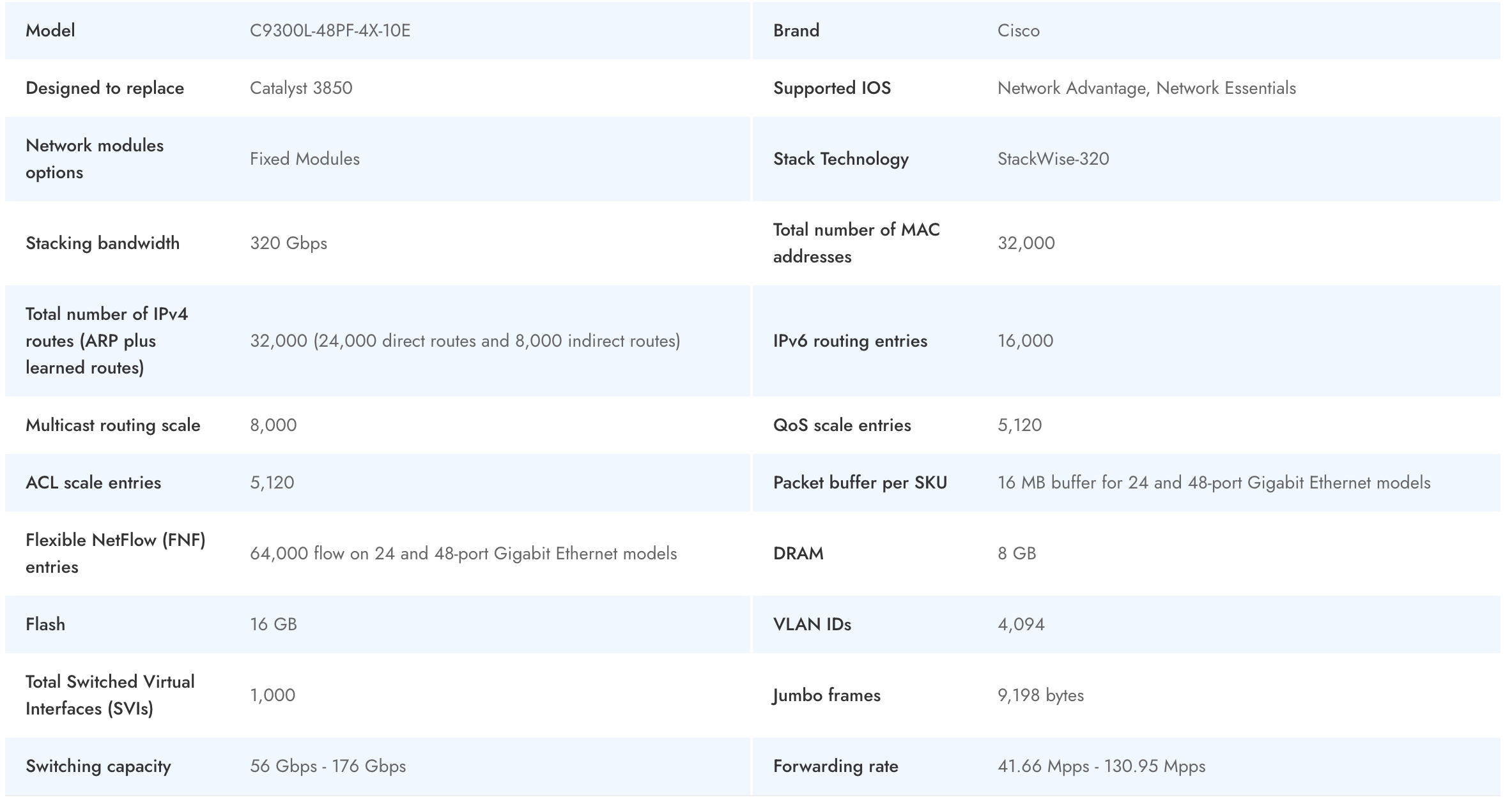 The Cisco C9300L-48PF-4X-10A is a next-generation enterprise-class switch engineered to deliver reliable, high-capacity switching for complex, medium to large-scale networks. Designed to replace legacy Catalyst 3850 series, this Cisco switch offers robust layer 2 and layer 3 performance, while integrating advanced Network Essentials and Network Advantage features for exceptional flexibility and security. With comprehensive support for Power over Ethernet Plus (PoE+), the C9300L-48PF-4X-10A powers a wide range of connected devices, maximizing operational efficiency and simplifying deployment in modern offices, campuses, and mission-critical environments. Leveraging the innovative StackWise-320 technology and a stacking bandwidth of 320 Gbps, this Cisco switch enhances scalability and seamless management across the infrastructure. Network administrators benefit from high forwarding rates, an expansive MAC address table, and support for thousands of VLANs—ensuring top-tier performance and adaptability to future growth. With dual support for Network Essentials and Network Advantage, organizations can tailor their feature sets to meet ever-evolving security and automation needs, while PoE+ ensures that VoIP, wireless access points, and surveillance can be deployed anywhere, quickly and securely. Whether upgrading from an earlier series or building a new infrastructure, the C9300L-48PF-4X-10A is purpose-built for distributed enterprises demanding robust switching, intelligent automation, and power efficiency, backed by Cisco’s proven expertise.