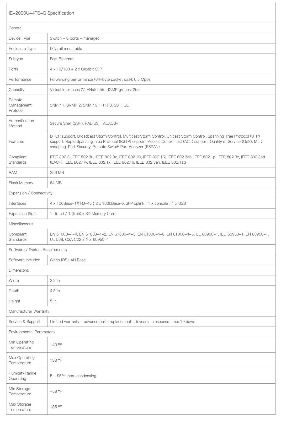 The Cisco IE-2000U-4TS-G Industrial Ethernet switch offers four fast Ethernet ports and two gigabit SFP ports for high-speed connectivity in industrial environments. With a compact design, this switch is suitable for deployment in tight spaces while providing reliable network performance,The rugged construction ensures durability against harsh conditions, making it ideal for use in challenging settings such as factories or outdoor installations. Equipped with advanced security features, the switch helps protect sensitive data and prevent unauthorized access to the network. This industrial-grade switch delivers efficient networking capabilities to support critical operations without compromising speed or reliability.