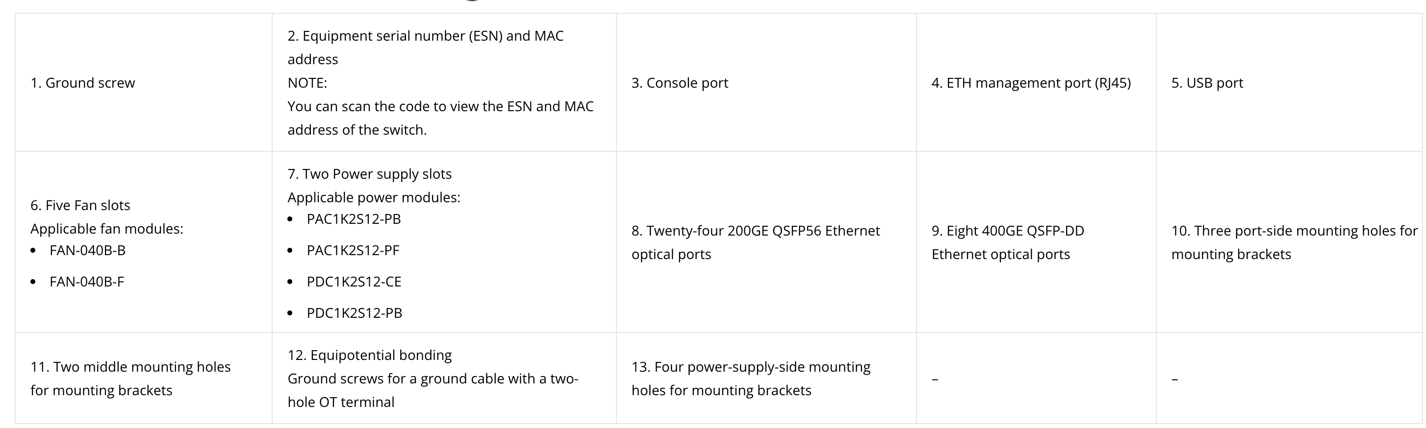 Huawei SXH8110-24BQ8DQ-B with 24*200GE QSFP56, 8*400GE QSFP-DD, 2*AC Power Modules, 6*Fans, Port-side Intake, is one of the Huawei XH8000 series switches.