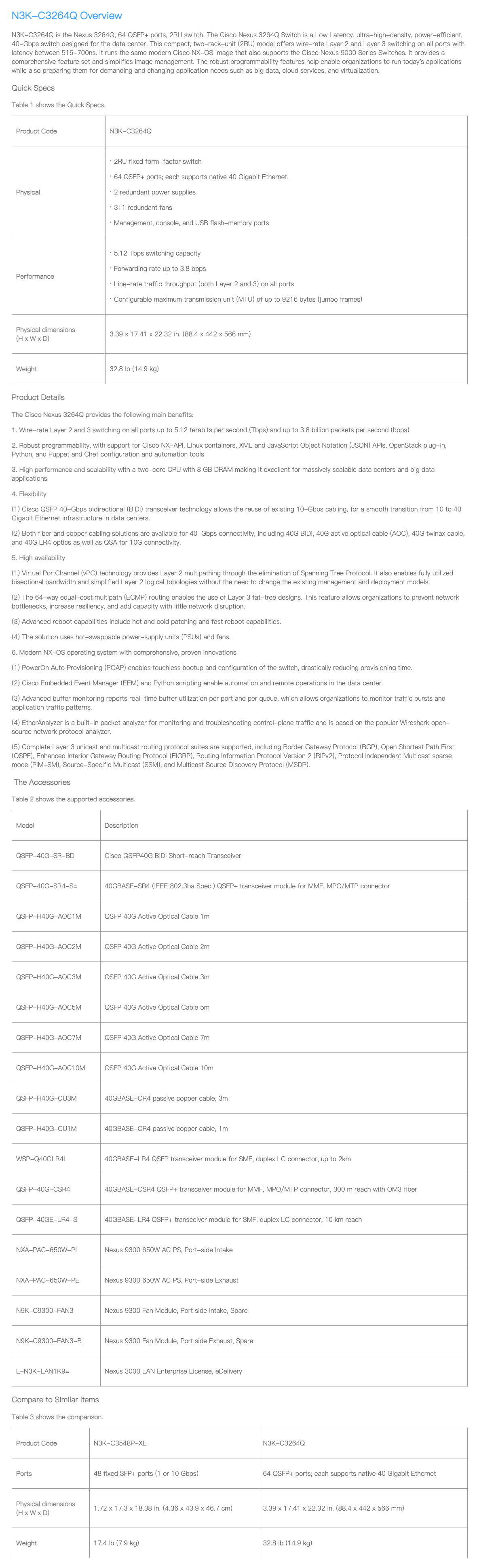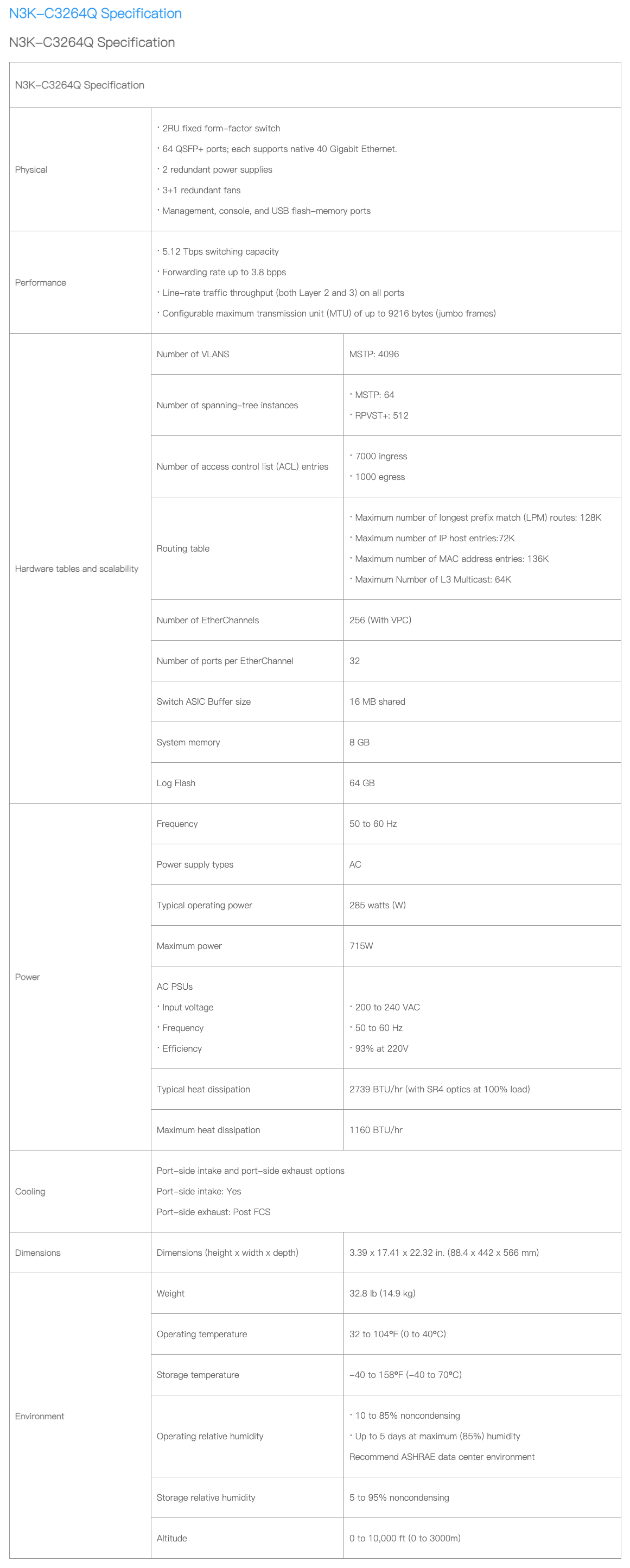 N3K-C3264Q - Cisco Nexus 3000 Series 64 QSFP+ ports, 2RU switch