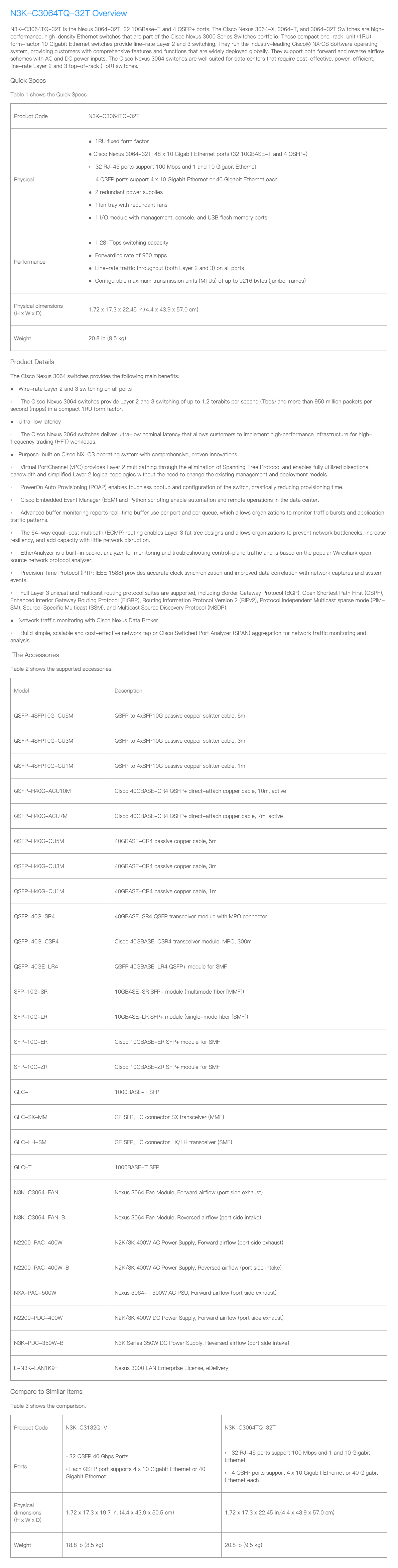 Cisco N3K-C3064TQ-32T Nexus 3000 Series switch Nexus 3064-32T, 32 10GBase-T and 4 QSFP+ ports