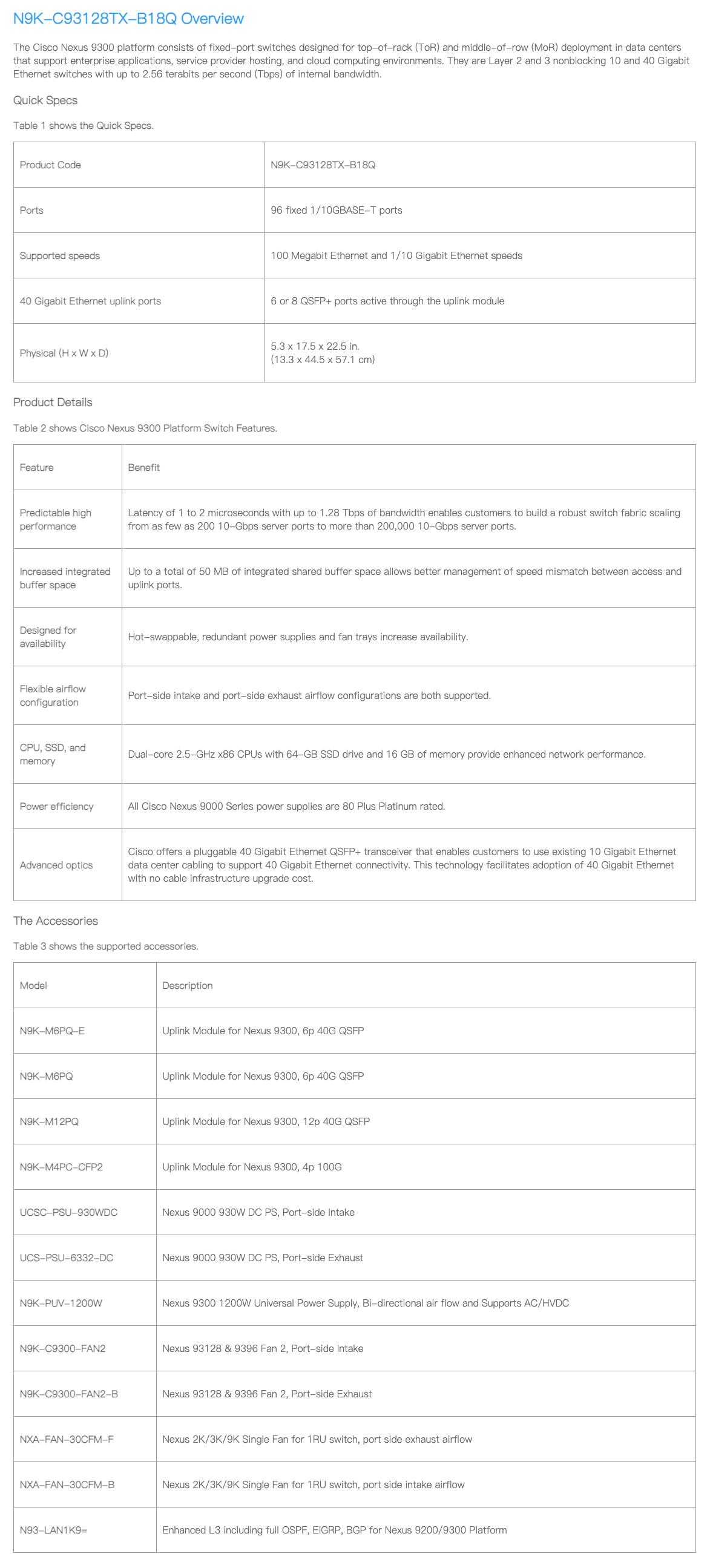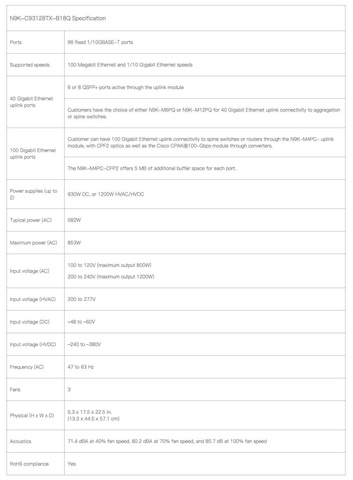 N9K-C93128TX-B18Q Specification