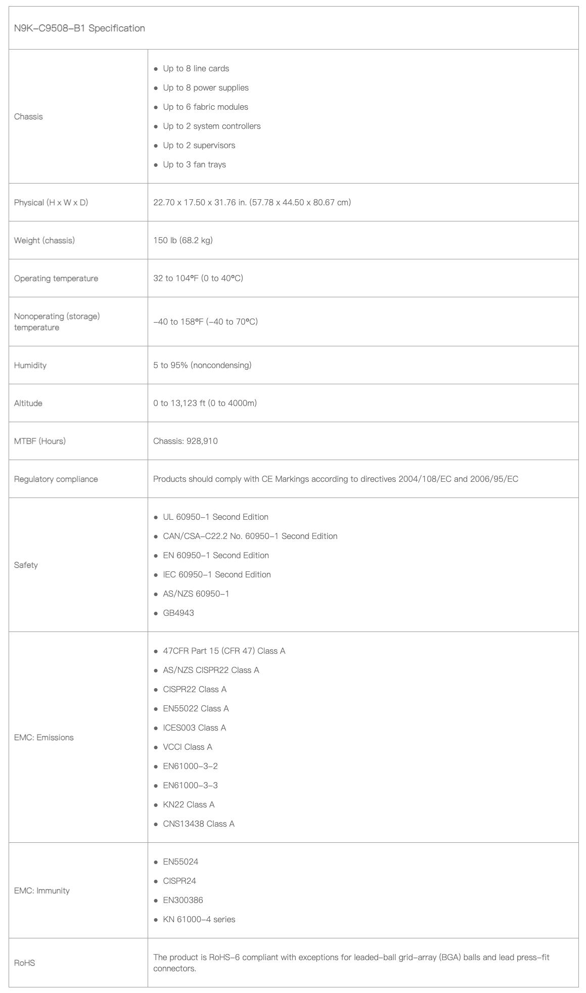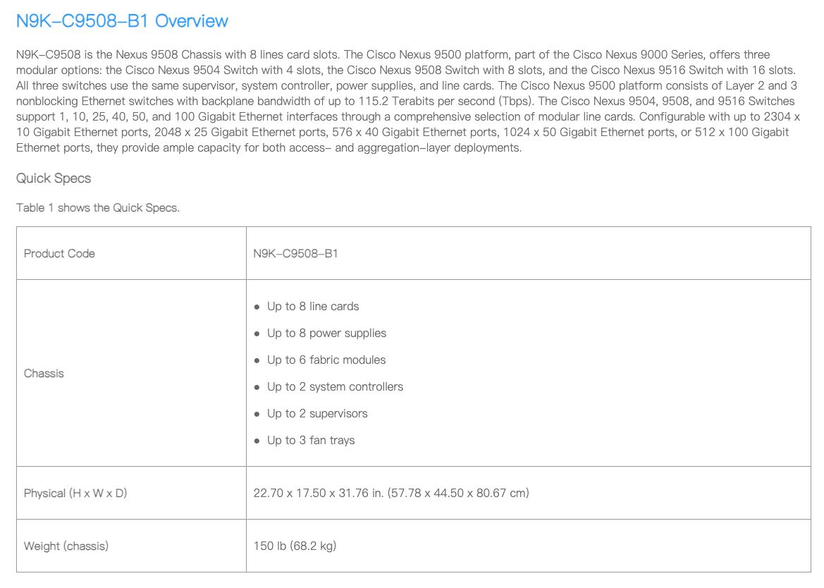 N9K-C9508-B1 Specification