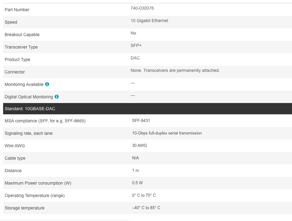 SFP+ 10 Gigabit Ethernet Direct Attach Copper (Twinax Copper Cable), 1M