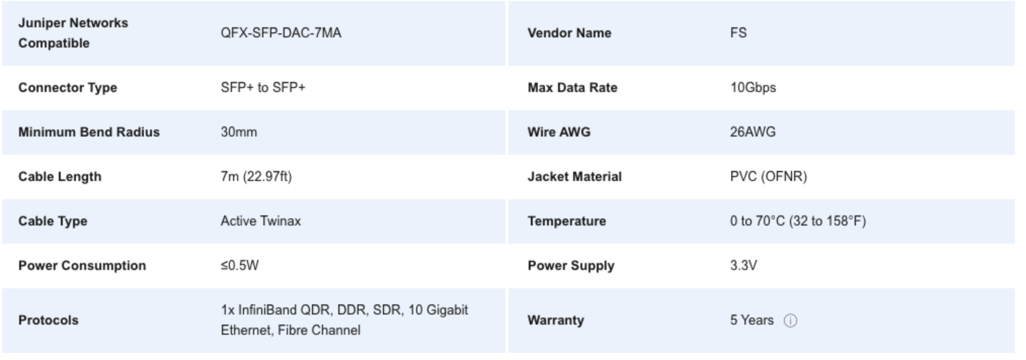 SFP+ 10 Gigabit Ethernet Direct Attach Copper (Twinax Copper Cable), 7M
