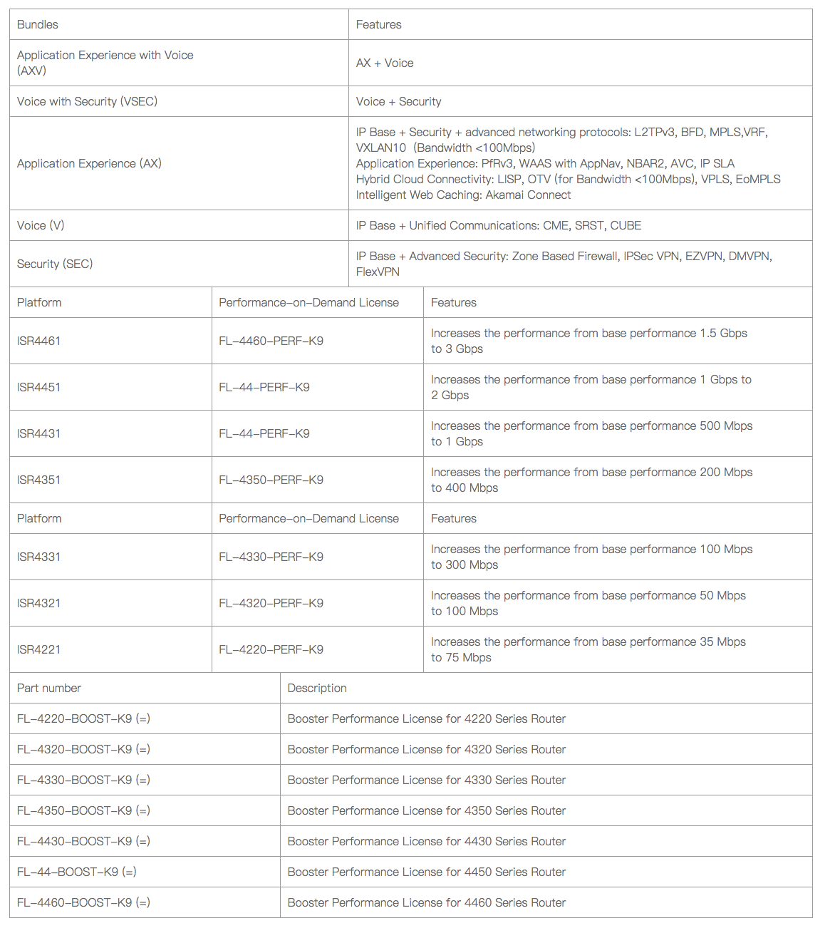 ISR4461-AX/K9 is the Cisco ISR 4461 with AppX license. The Cisco 4000 Series Integrated Services Routers (ISR) revolutionize WAN communications in the enterprise branch. With new levels of builtin intelligent network capabilities and convergence, the routers specifically address the growing need for application-aware networking in distributed enterprise sites. These locations tend to have lean IT resources. But they often also have a growing need for direct communication with both private data centers and public clouds across diverse links, including Multiprotocol Label Switching (MPLS) VPNs and the Internet.