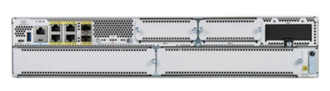 5 | RJ-45 Gigabit Ethernet port (1G 0/0/2) | 6 | SFP+/10 Gigabit Ethernet port (10G 0/0/4) for C8300-2N2S-4T2X SFP/1 Gigabit Ethernet port (1G 0/0/4) for C8300-2N2S-6T |